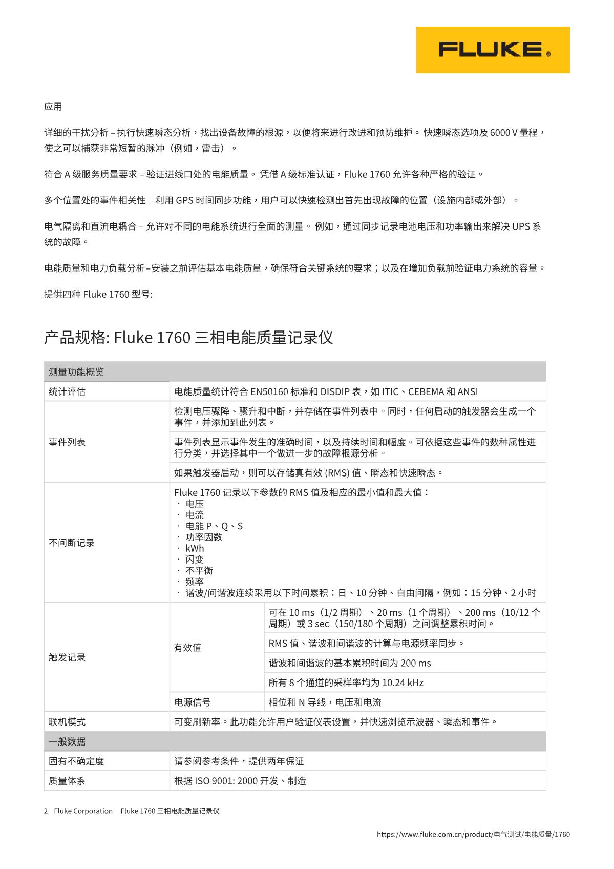 Fluke 1760 三相电能质量记录仪完全符合 IEC 61000-4-30 A 级标准,非常适合高级电能质量分析和统一标准测试。 此电能质量监视工具设计用于在中低压电网中分析公益事业和工业的配电系统,允许用户灵活自定义阈值、算法和测量选项。 1760 电能记录仪可以捕获用户所选参数的详细资料。